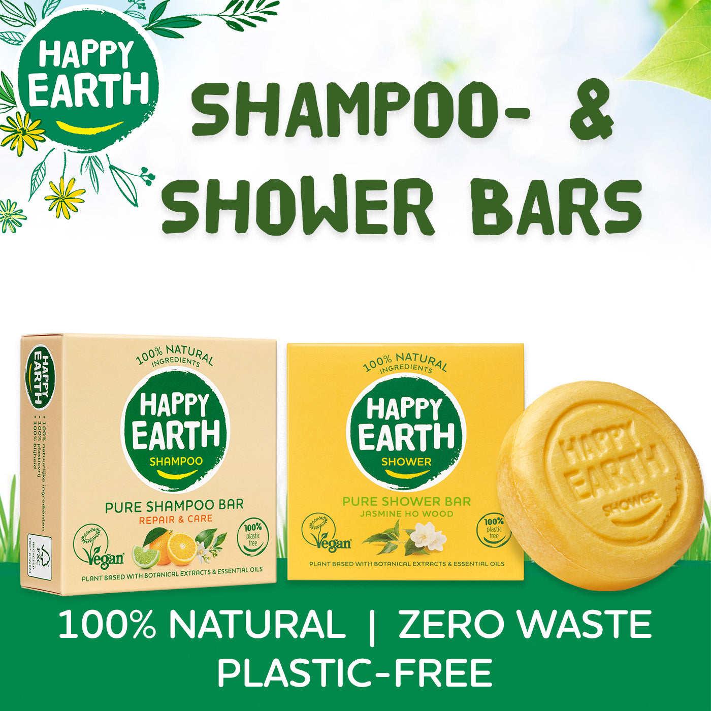 All Happy Earth bars are 100% natural, 100% plastic-free and 100% nurturing!Bars are not only convenient to use, but also last much longer than a normal bottle, so super durable!