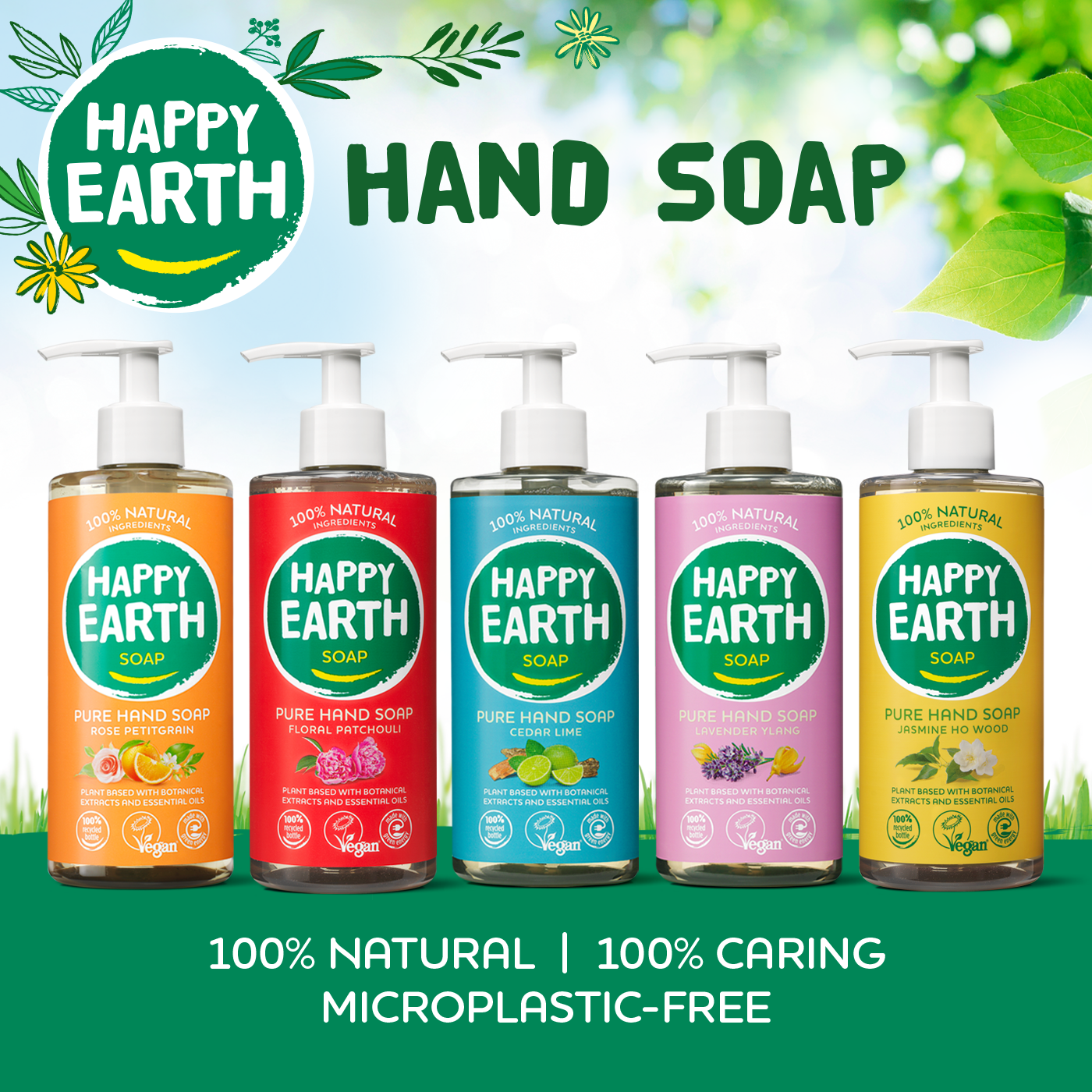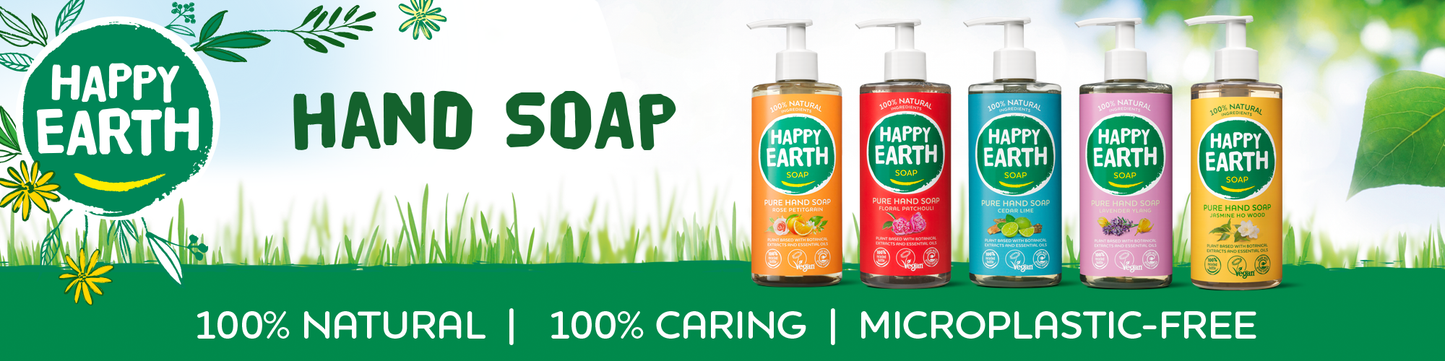 Fresh, happy hands all day long with our Happy Earth hand soap. All our hand soaps contain only certified 100% natural, vegan ingredients and are free of chemicals such as SLS / SLES. The products are antibacterial, biodegradable and smell great!