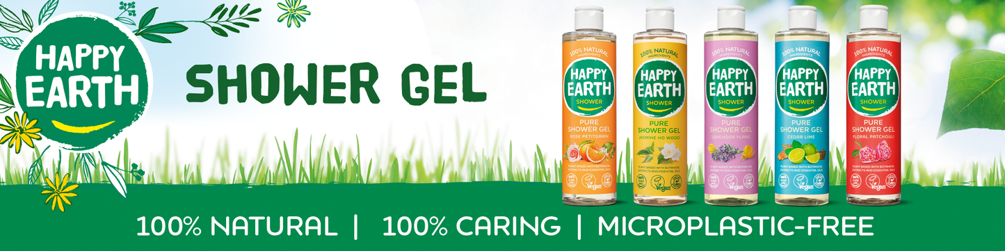 The Happy Earth shower gels only contain 100% natural ingredients that make your skin happy, so no SLS / SLES, parabens or other nasty additives. Our shower gels smell wonderful and are caring for the skin. We produce all shower gels in the Netherlands with green energy and pack them in bottles made from 100% recycled plastic. This way you not only take good care of yourself but also our earth!