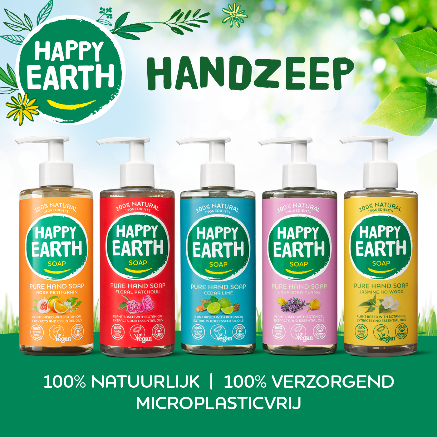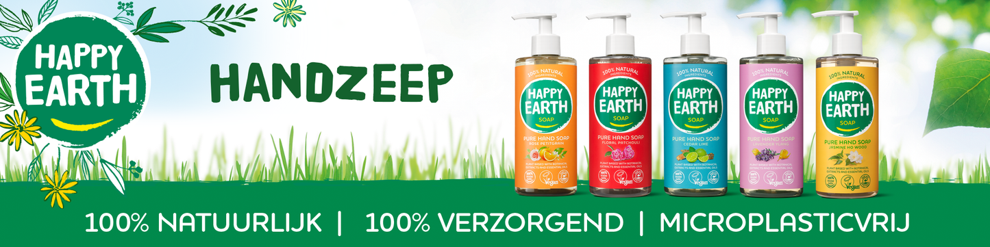 De hele dag door frisse, happy handen met onze Happy Earth handzeep. Al onze handzepen bevatten alleen gecertificeerd 100% natuurlijke, vegan ingrediënten en zijn vrij van chemicaliën zoals SLS/SLES. De producten zijn antibacterieel, biologisch afbreekbaar en ruiken heerlijk!