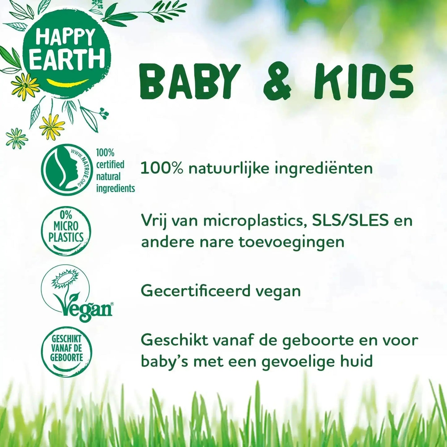 De babylijn is, net als alle andere producten van Happy Earth, gecertificeerd natuurlijk, vegan én microplasticvrij. Want als je iets op de huid van jouw baby aanbrengt, is het fijn om zeker te weten dat er geen vervelende ingrediënten in zitten.