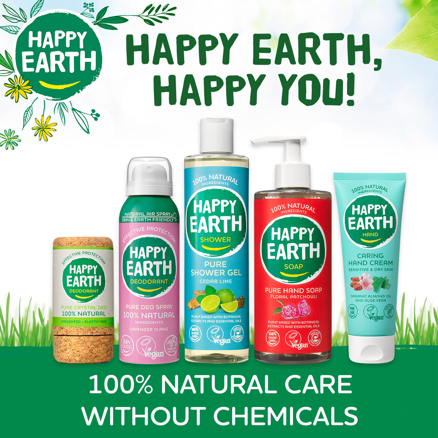 All products are certified for full transparency towards the consumer. Happy Earth proudly carries the certifications of NATRUE, Vegan Society, and Zero Plastic Inside.